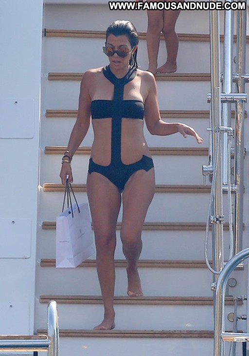Kourtney Kardashian Celebrity Beautiful Babe Posing Hot Paparazzi France Swimsuit Yacht
