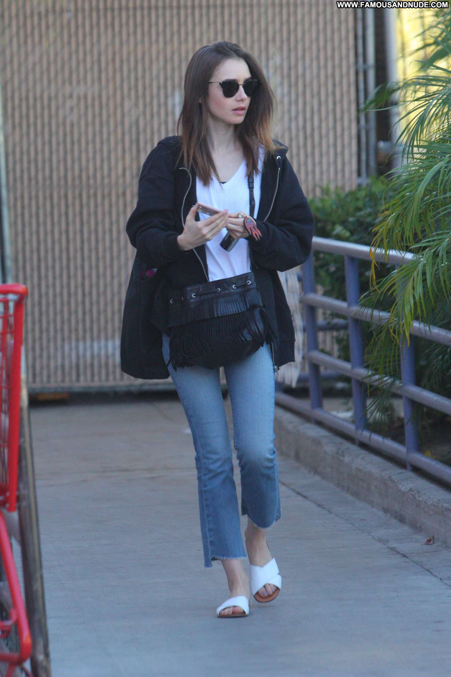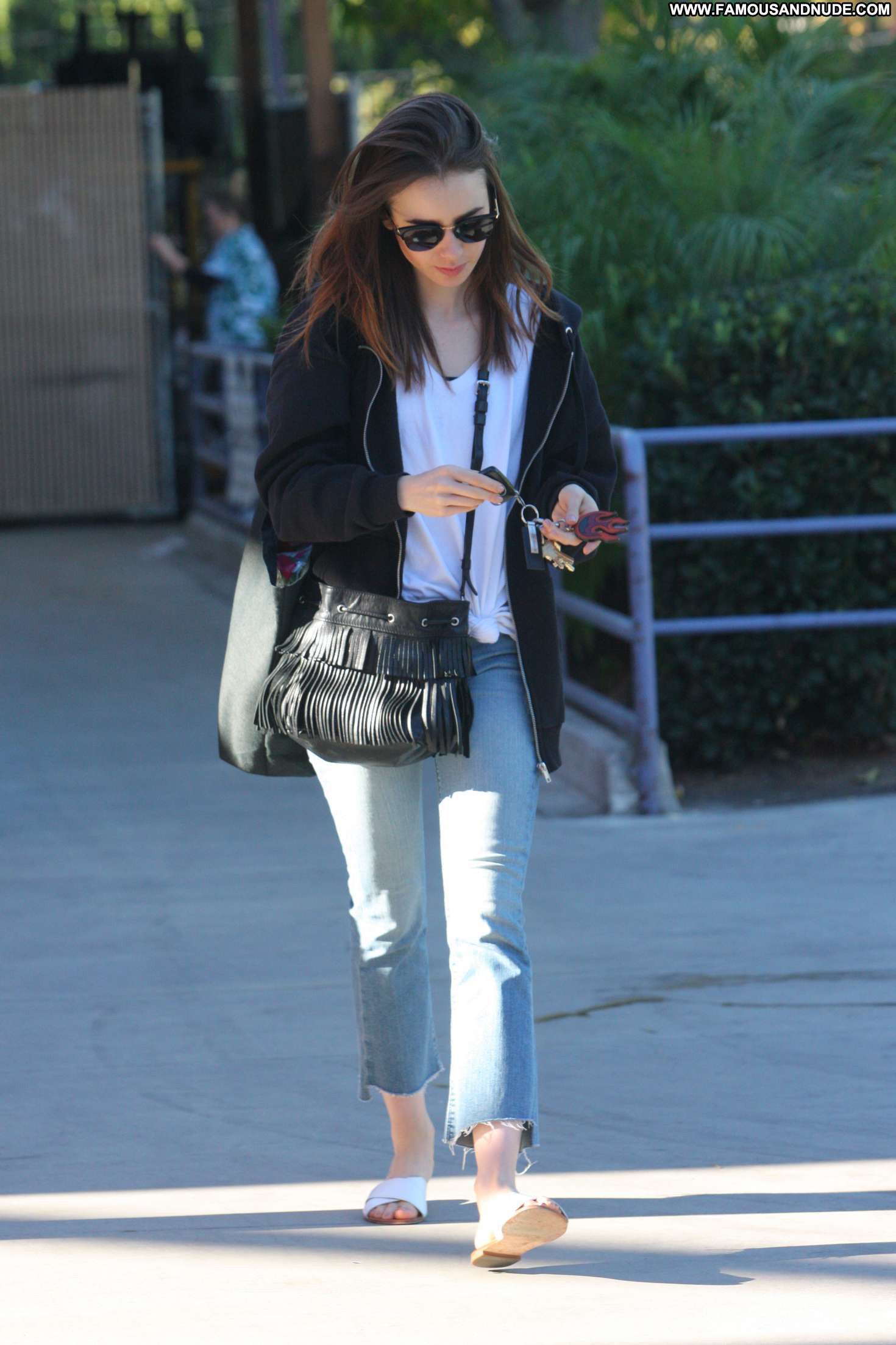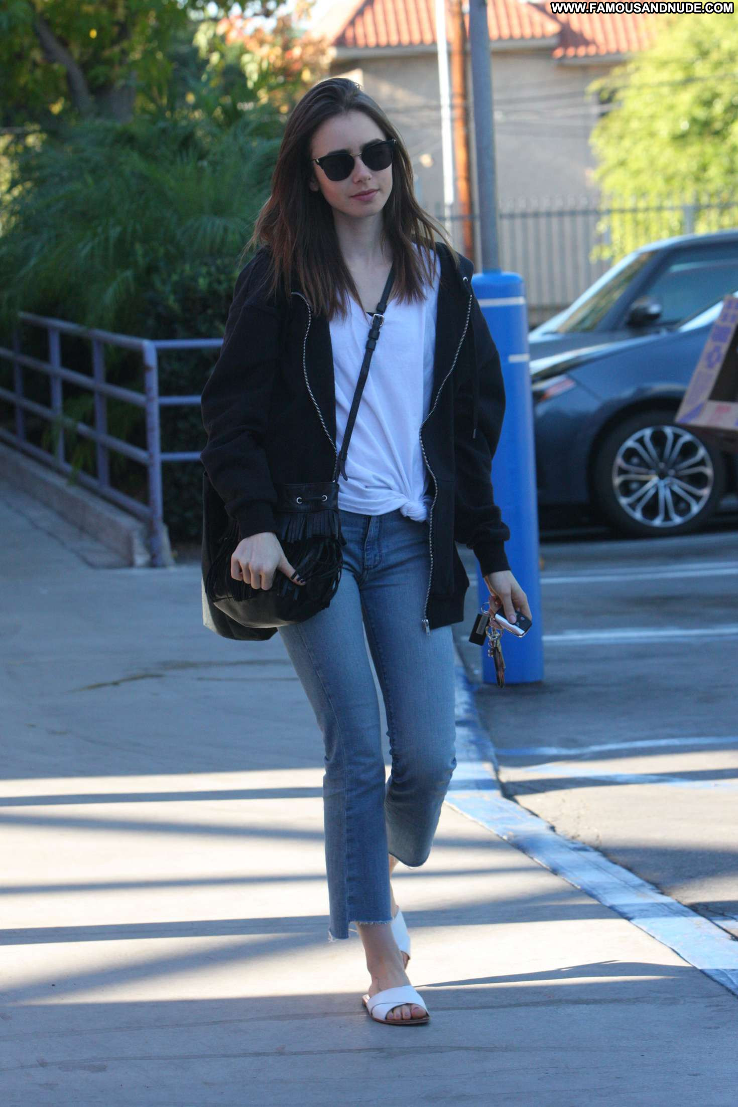 Lily Collins Straight Paparazzi Jeans West Hollywood